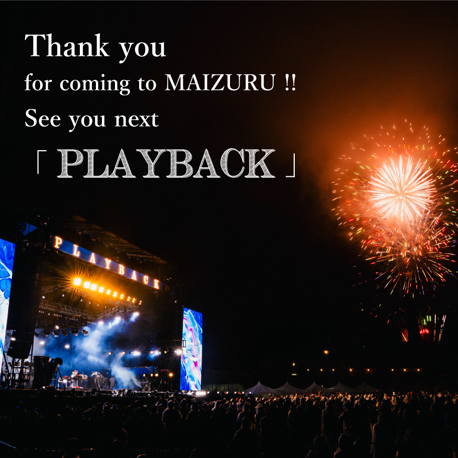 舞鶴を「もう一度はじまる場所にしたい」その言葉だけを頼りに、一人また一人と仲間が増えていき、町の方々にも少しずつ気持ちと熱量をお伝えしながら、1年目は1万5000人の方にどうにか足を運んで頂き大成功を収めました。2年目はさらに地域との連携を深め、初の2dyas開催で2万5000人を動員し、「海の京都・舞鶴」としての港の活性化はもちろんのこと、自衛隊さんにもご協力をいただき、フェスと連動したキャンプも実現致しました。このような一つ一つの取り組みが MAIZURU PLAYBACK FES. をどこのフェスとも似ていない「地域と連携した新しいFESの形」たらしめる理由になっていると思います。しかしまだまだたくさんの実現したいことや、改善していかなければならないことがあります。アーティストの皆さんとまだ誰も見たことのないその先に向かうために。