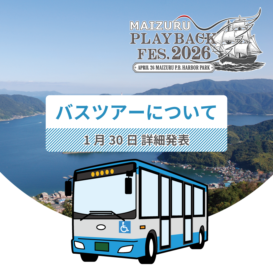 MAIZURU PLAYBACK FES. 2026 へのご来場を予定されている皆さまへ。 会場までの移動手段としてご案内予定のバスツアーの詳細情報を、1月30日に発表予定です。 発着地・…